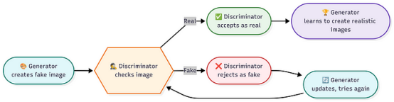 GANs簡化流程:生成器創作→判別器批判→生成器改進