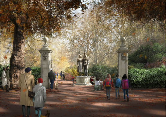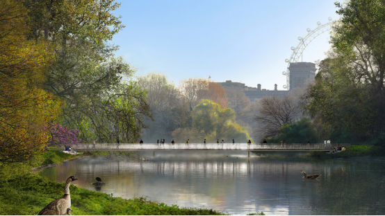 福斯特建筑事務(wù)所為伊麗莎白二世女王紀(jì)念館提出的設(shè)計(jì)方案包括在圣詹姆斯公園新建一座橋梁、紀(jì)念門、花園以及具象雕塑。