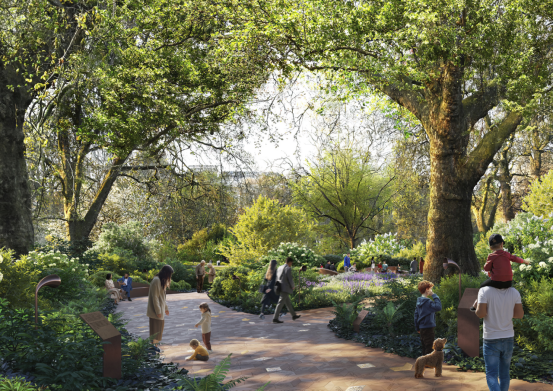 設(shè)計(jì)方案還包括具象雕塑和一座以菲利普親王命名的紀(jì)念門。花園的設(shè)計(jì)象征著英聯(lián)邦,而藝術(shù)裝置則慶祝國(guó)家的多樣性。獲勝團(tuán)隊(duì)還包括藝術(shù)家因卡·修尼巴爾和著名景觀設(shè)計(jì)師米歇爾·德維涅。