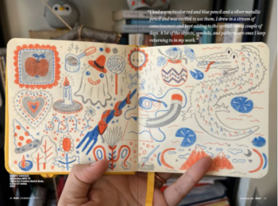 這本6x9英寸的校友雜志以"創意從何開始?"為主題,通過校友手稿、折疊插頁展現時裝學院的創意生態。