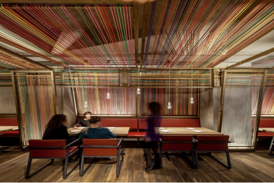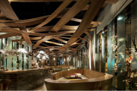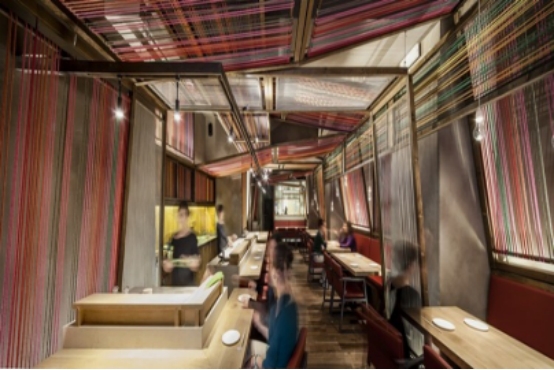 在PAKTA餐廳中,日式烹飪傳統與秘魯風味碰撞:秘魯織機紋樣的明艷色彩突破日式極簡框架,手工質感成為文化對話的載體。而Ikibana Paral餐廳則融合日本與巴西元素,用自然材質打造動態"人造景觀"。