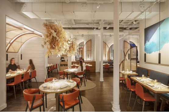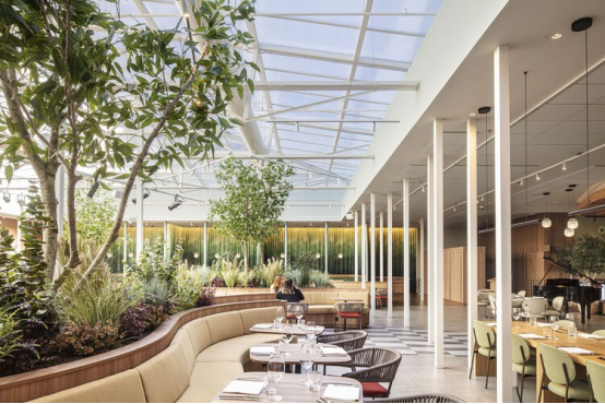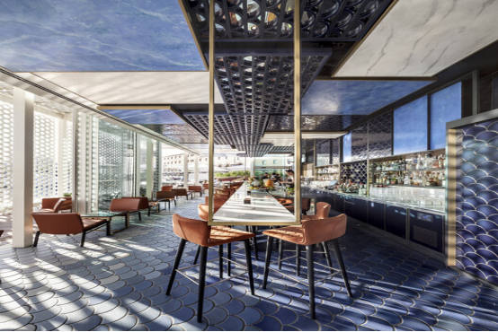 Simultaneo空間將蒙錐克山的地中海風情引入巴塞羅那市中心:木質天花模擬樹冠,有機形態長凳與中性色調襯托綠植,構建出"城市花園"的復合場景。通過與當地藝術家、匠人合作,材料成為連接使用者與地域文化的紐帶。