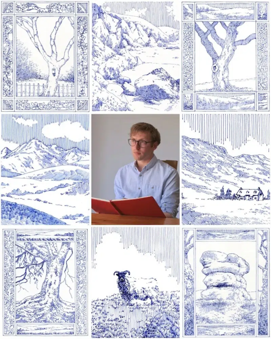 自然始終是藝術家們取之不盡的靈感源泉。樹木、云朵、山巒與海洋被賦予無數種詮釋,每一種都折射出創作者獨特的視角。英國藝術家兼插畫師哈利·弗羅斯特用一系列鋼筆畫作品延續這一傳統,以藍色墨水抒發對自然世界的熱愛。