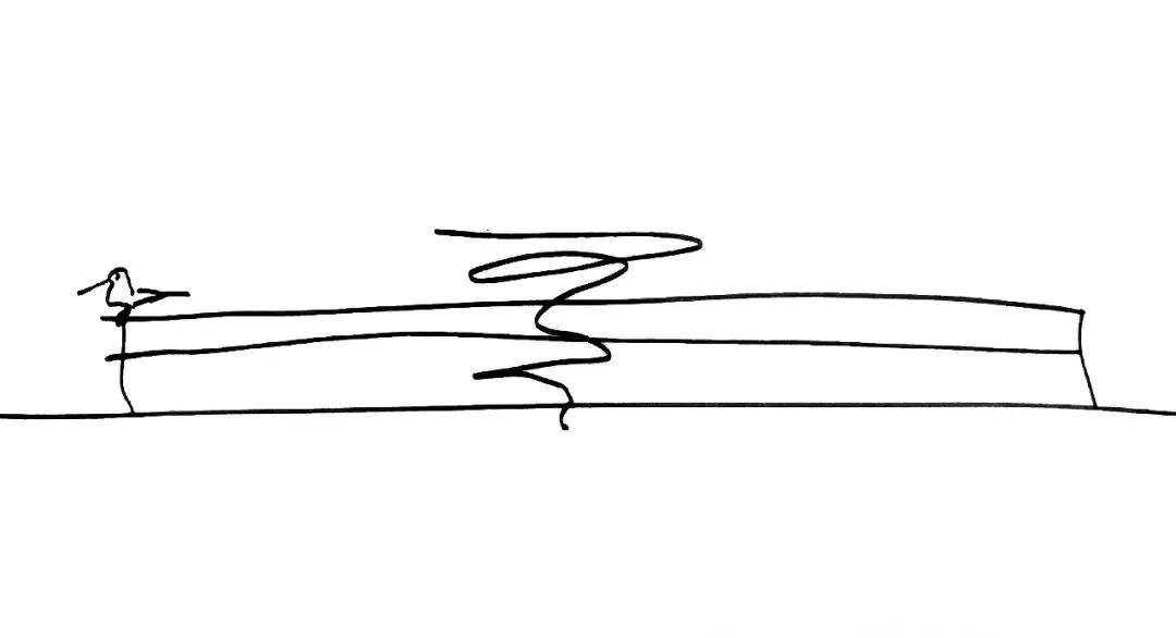 沿樓梯而上,最終抵達一座視野開闊的觀景平臺。建筑師通過刻意的抬高和出挑,使平臺遠遠便可被識別。這座可以登臨的“雕塑”地標性不僅體現(xiàn)在建筑本身如外星來客般的獨特造型上,更體現(xiàn)在人們向上探索、與空間互動的過程中。馬巖松認為: