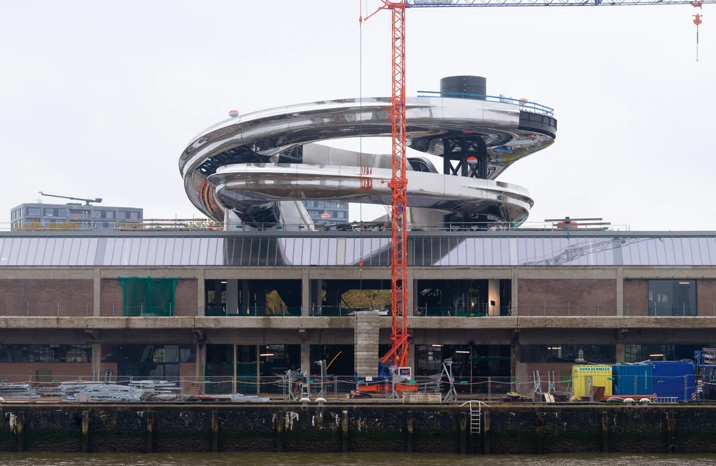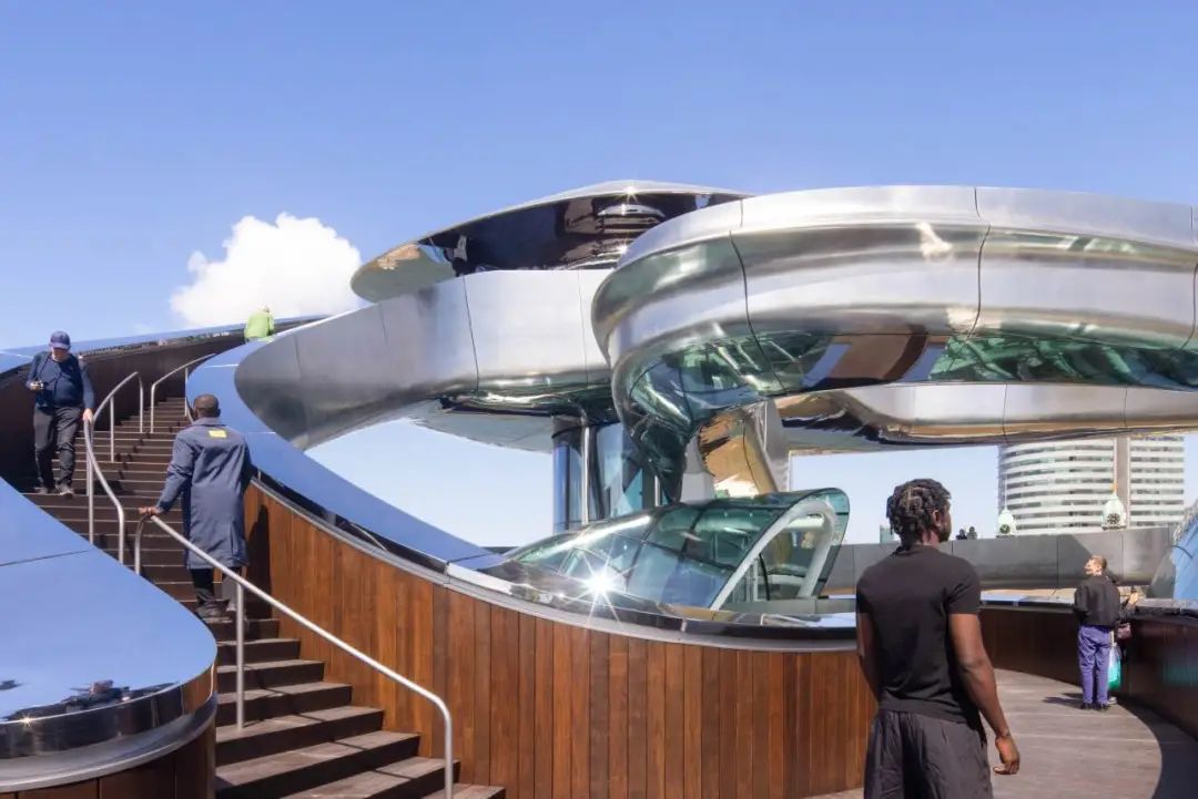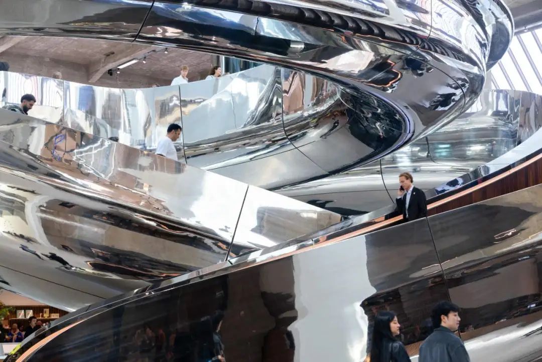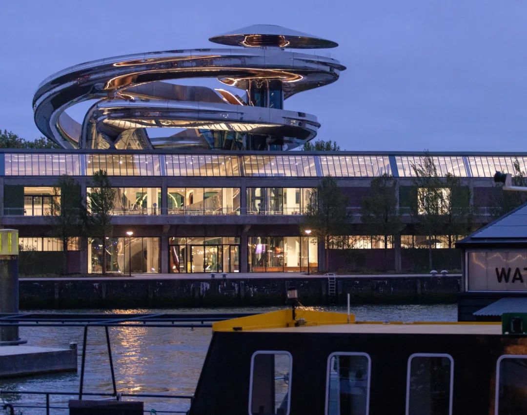 走近Fenix博物館,最引人注目的便是那道仿佛“沖出地面”的銀色螺旋體。它從倉庫中央破頂而出,旋轉(zhuǎn)上升,最終化作鹿特丹天際線中新的視覺節(jié)點。雖然被稱作“龍卷風(fēng)”,但在馬巖松的構(gòu)想里,它更像是一道“精神的路徑”——既承載歷史的起點,又引領(lǐng)人們走向一個輕盈、開放的未來。