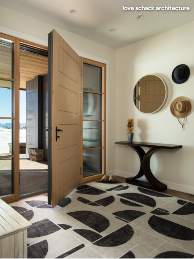 懷俄明州阿爾塔的這棟住宅由[Love Schack Architecture]遵循被動(dòng)式房屋原則設(shè)計(jì),入口在保證防風(fēng)抗雪的同時(shí),通過大面積玻璃引入自然光與山景。走廊盡頭的獨(dú)立儲物間隱藏外套鞋履,大規(guī)格裝飾地磚與精選家具共同營造現(xiàn)代溫暖感。