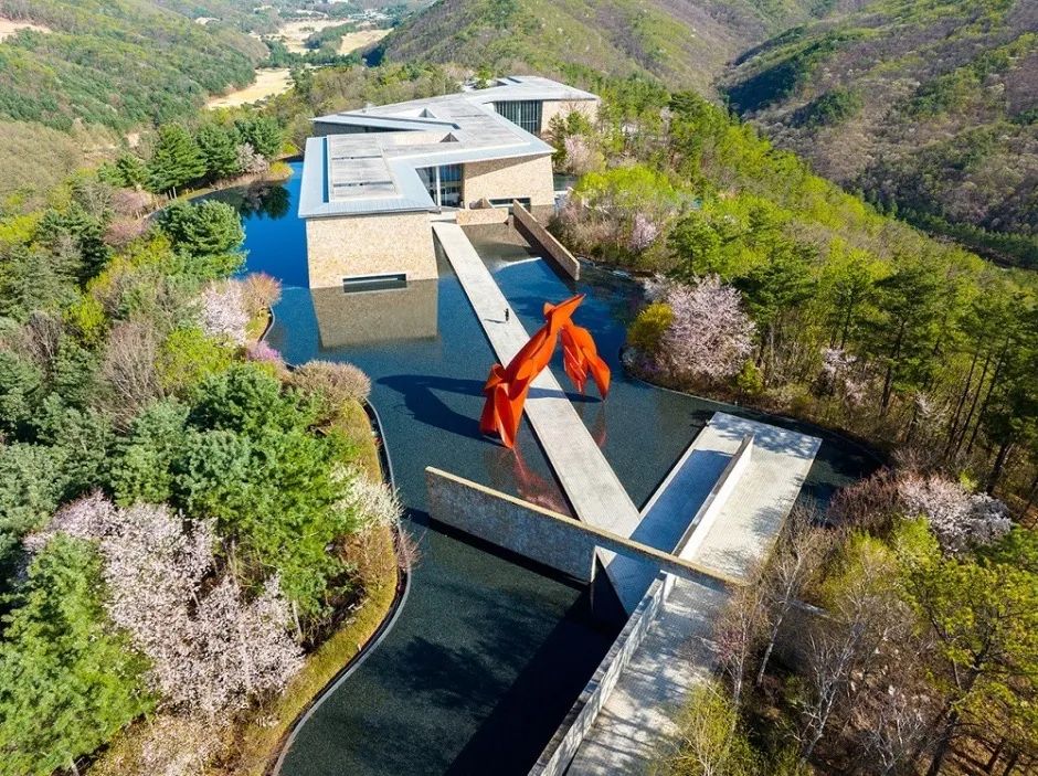 在“Ground”項目之前,安藤忠雄已與韓國江原道的Museum SAN有著長達十余年的合作關系。這座位于山間的博物館由安藤在2013年完成設計,被譽為其“自然與沉思建筑”理念的亞洲代表作之一。整體由水之庭園、石之庭園、主展館與紙之館等部分構成,以清水混凝土、簡潔幾何和自然構筑了一個內向、冥想、詩意交匯的文化空間。