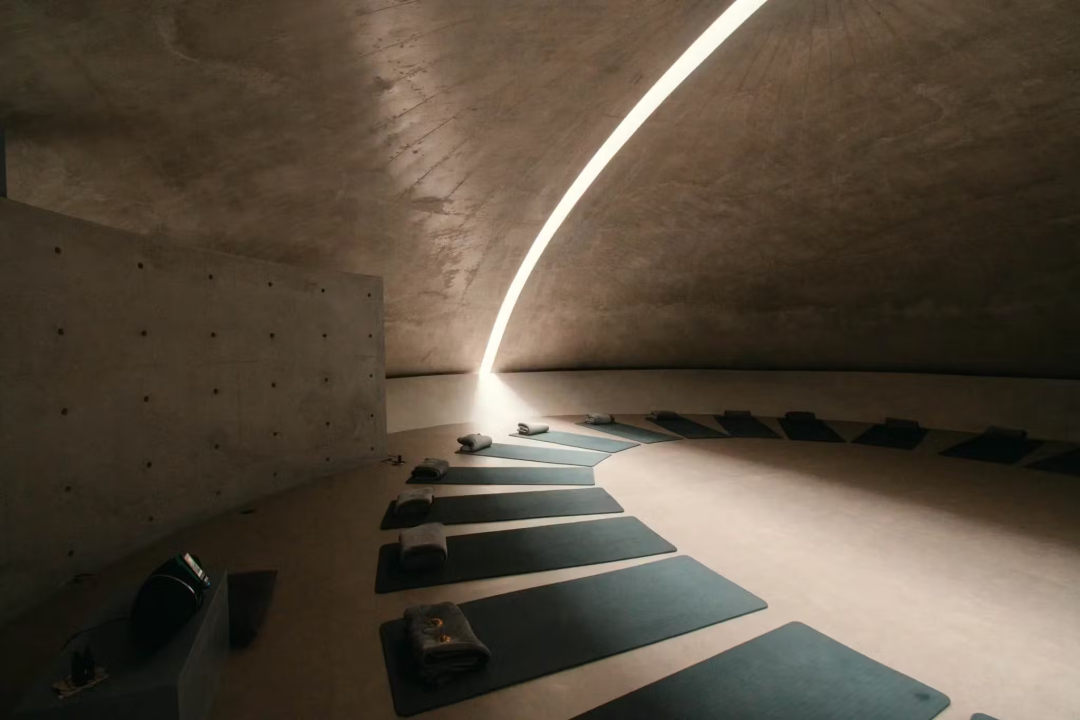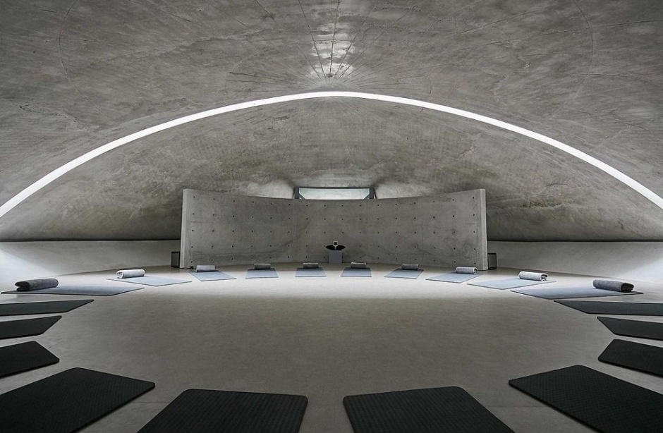 “Ground”埋于Museum SAN的花園之下,直徑25米、高7.2米,通過螺旋樓梯進入,頂部設一2.4米寬的圓形穹頂天窗。垂射光線淡入混凝土空間,創造出如古羅馬萬神殿般的肅穆氣氛,同時引入自然雨、風雪等元素,與環境形成動態呼應 。
