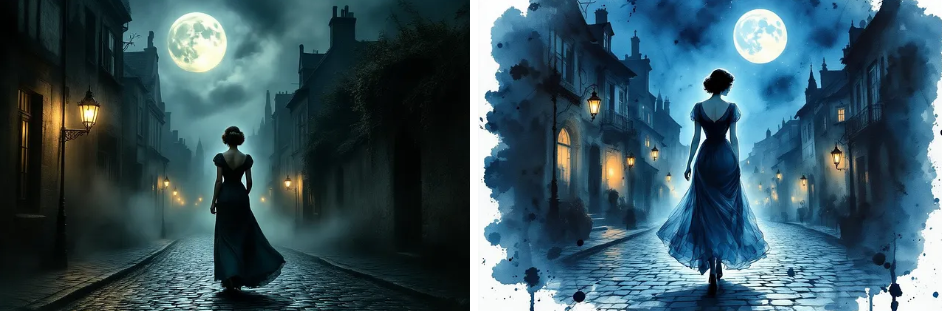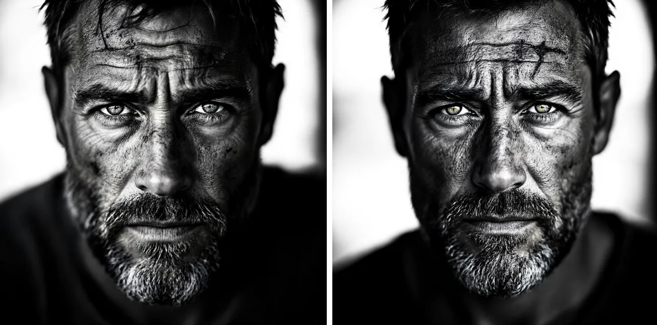 (左:攝影師風(fēng)格 / 右:肖像風(fēng)格——后者情緒表達更具深度)