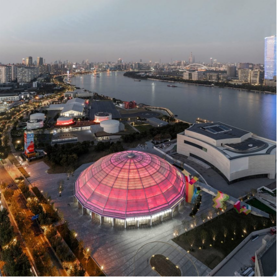 丹麥團隊將上海水泥廠改造為演藝體育綜合體,修復了橙色鋼架穹頂。"保留象征城市記憶的穹頂結構,讓其與新城區共生,這個命題令人振奮。"設計總監克里斯·哈迪如是說。