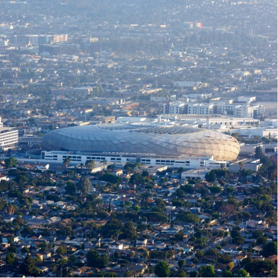 為洛杉磯快船隊打造的這座體育館,鉆石形金屬面板覆蓋的網格穹頂,隱喻"籃球穿網而過"的瞬間。同期,Trahan建筑事務所完成了新奧爾良凱撒超級穹頂的災后修復。