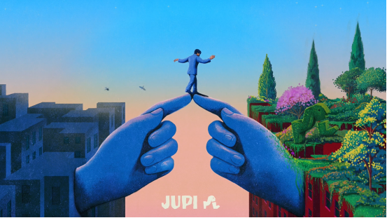 視覺系統中樞是一組馬格利特風格的超現實插畫:走鋼絲、排列星辰、穿越迷宮…這些意象抽象又精準地捕捉決策困境。Cat表示:"超現實主義為無形之物提供了視覺語言,既呈現Jupi化繁為簡的能力,又注入情感深度。"