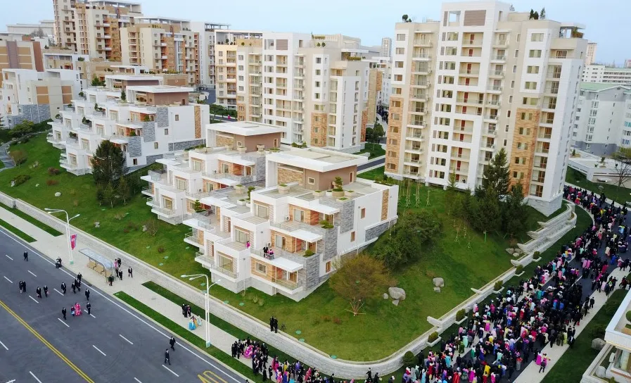 平壤普通江岸梯田式住宅區(qū)項(xiàng)目(圖源:朝中社)