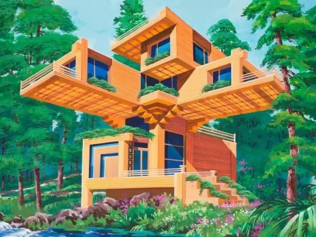 設(shè)計(jì)師還為富豪們構(gòu)想了一棟森林河畔的“鳥巢”家庭旅館,其結(jié)構(gòu)重疊交錯,與古朝鮮建筑風(fēng)格相似。
