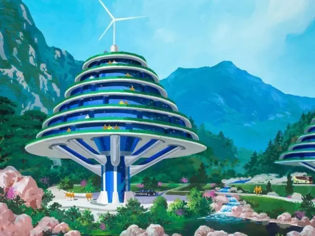 朝鮮的建筑想象力不止于現(xiàn)實(shí)項(xiàng)目。2014年威尼斯建筑雙年展上,朝鮮展示了一系列關(guān)于金剛山度假區(qū)未來派的設(shè)計(jì)藍(lán)圖。
