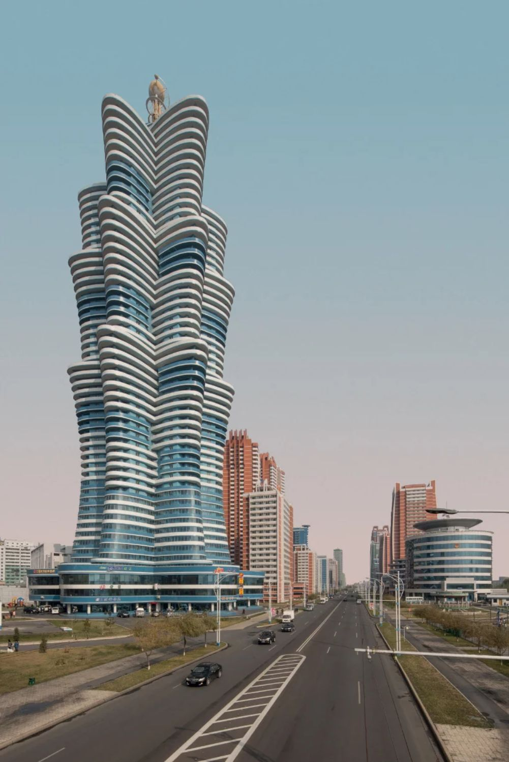 朝鮮的建筑也像這個國家:宏偉壯觀的外表下,既有超現(xiàn)實(shí)的想象力,也有速成工程的脆弱;既有溫柔的馬卡龍色彩,也有混凝土的沉重現(xiàn)實(shí)。