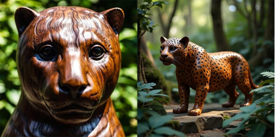 提示詞:叢林環境中的混凝土雕塑,斑駁陽光,強烈陰影,寫實紋理