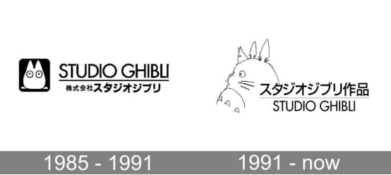 吉卜力工作室于1985年創立后不久,便啟用了以Totoro為主題的標志。初始設計采用簡潔的Totoro形象,搭配干凈利落的字體排版。