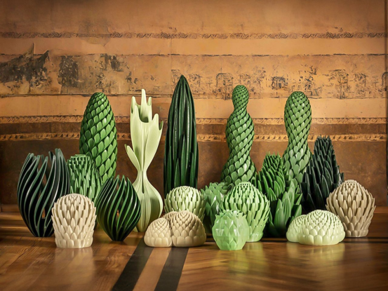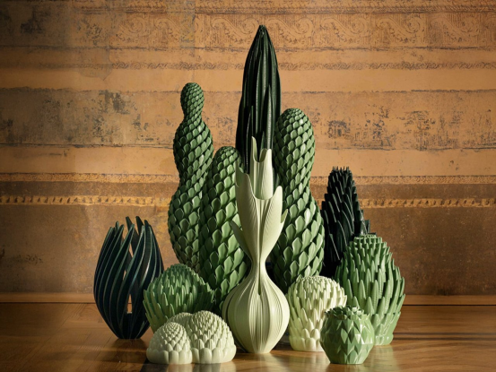 采用玉米基生物塑料與天然礦物復(fù)合的Pure.Tech材料,這些受植物葉序啟發(fā)的雕塑能吸收二氧化碳等污染物,無需澆水日照,既是可持續(xù)的低維護(hù)裝飾,也是引發(fā)對話的藝術(shù)裝置。