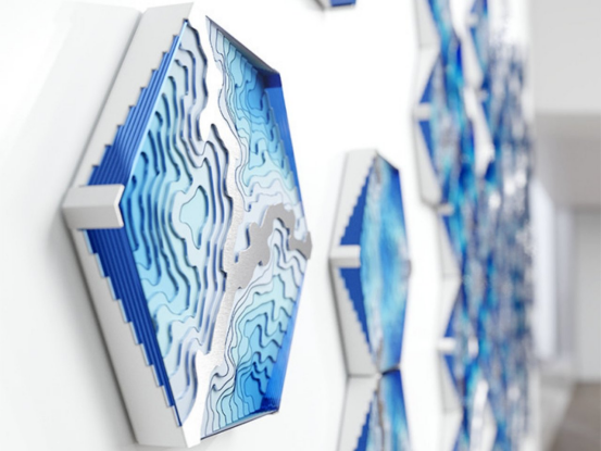 每塊瓷磚均采用有機(jī)玻璃、再生塑料和拉絲不銹鋼等環(huán)保材料,在工作室手工制作。可選擇拉絲不銹鋼或鏡面鍍金處理,為空間帶來動態(tài)的海洋元素,其可持續(xù)特性更使其成為現(xiàn)代家居的優(yōu)選。