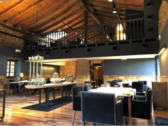 餐廳的室內充滿鄉村魅力,完美融入了巴斯克山區的自然環境。餐廳的空間寬敞,采用了大量原木和天然材料,營造出溫暖、樸實且親近自然的氛圍。大面積的窗戶讓自然光線充盈其中,同時提供了美麗的鄉村景色,讓人在用餐時仿佛與大自然親密接觸。