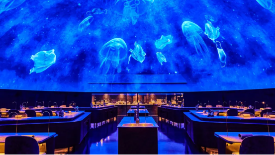 餐廳的入口是兩噸重的青銅大門,設計上讓人聯想到奇幻故事中的場景,用餐空間設有穹頂和多層次的區域設計,隨著晚餐的進行,場景不斷變化,帶領食客體驗不同的視覺和情感感受。