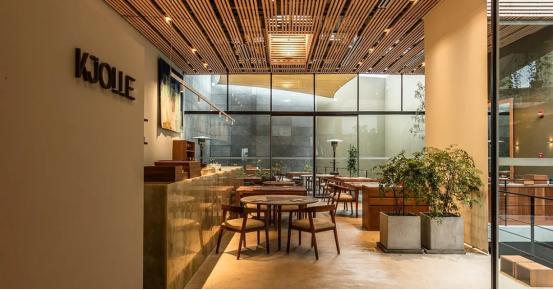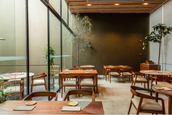 Quintonil 的室內空間明亮寬敞,入口區采用溫暖的木材和柔和的色調,營造出一種溫馨而舒適的氛圍。主用餐區則裝飾有精美的墨西哥藝術品和手工藝品,既展示了當地文化的獨特魅力,又讓環境充滿了活力與藝術感。