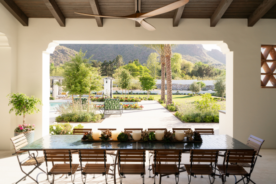 亞利桑那州Paradise Valley的這處帶頂用餐露臺,讓業主既能享受美景又免受烈日侵擾。設計師Wendy Black Rodgers選用超大餐桌,現代家具與地中海風格建筑碰撞出業主期待的混搭美學。
