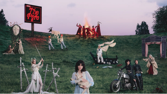 Studio Island創意總監Holly Williams指出,雖然沉浸式世界構建始終是重點,但近十年的變化在于藝術家需要覆蓋的線上線下觸點呈指數增長。"可能是MV,也可能是15秒的采訪片段——必須確保所有平臺都呈現符合藝術家基因的 cohesive 世界。"她合作的The Last Dinner Party樂隊首次會議就帶來70頁視覺參考手冊,從啟發他們的電影到平面設計靈感,形成完整的視覺表達準則。這種堅持體現在其致敬大衛·林奇的Brits頒獎禮演出,以及新專輯《From the Pyre》信息密集的封面上。