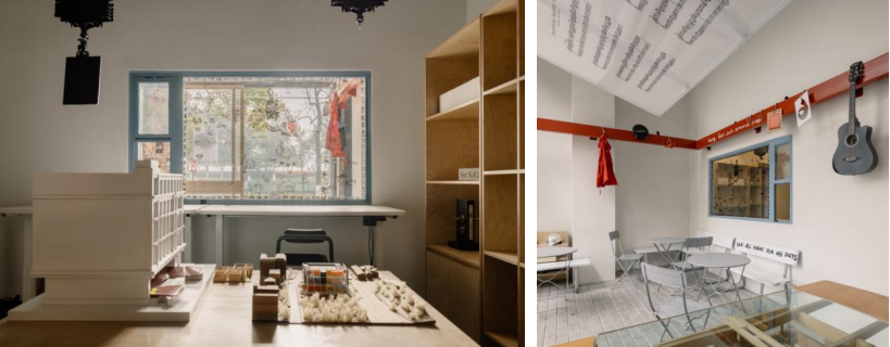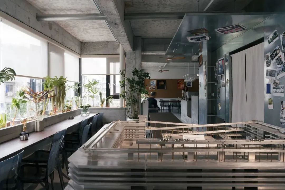 沿街的玻璃窗內即為真實的建筑工作室,模型和場景一直處于流動和變化中,可以近距離圍觀建筑師的每日“整活”。相較于以往隱私性較強的辦公區域,街邊則面臨更大的開放性挑戰。say希望新的辦公室可以取消傳統的辦公模式,以使用者的需求為切入點,探尋更具生活化的開放辦公空間。