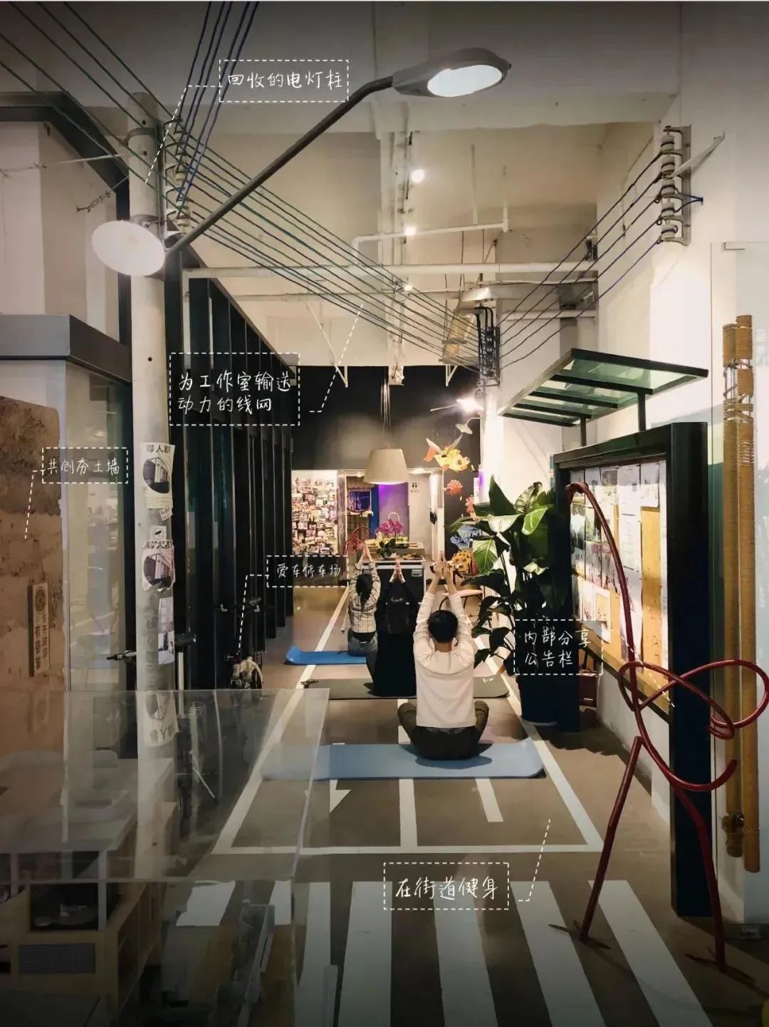 在扉建筑對于“無界”的探索中,經歷了多種版本。2012年,工作室搬入一處約300平方的空間開始了“無界社區”的1.0版:將室內空間轉換為“街景”,融入辦公室的各個功能區域中間,形成了動感且別具一格的辦公環境。2016年,又在廣州番禺區尋得紫坭糖廠,攜手藝術家與設計師朋友共同打造了2.0版的無界社區——紫泥十二門。