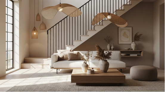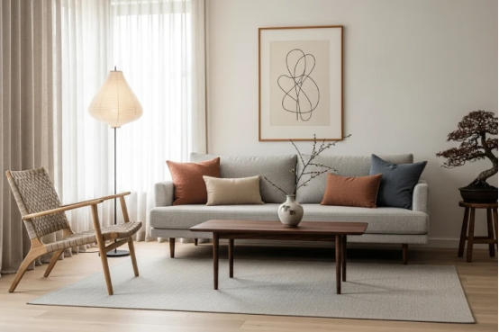 日式斯堪的納維亞風格融合了日式極簡主義與斯堪的納維亞的簡約風格。它在利落的線條、實用的家具與寧靜的氛圍之間找到了平衡。在實際呈現中,這種混合美學彰顯了簡約、工藝以及與自然的緊密聯系。兩種文化傳統都偏愛中性色調、天然材料和整潔的空間。室內設計師納雷格?泰穆里安指出,日式斯堪的納維亞風格將 “利落的線條、天然材料和功能性” 與日式設計中的寧靜感和精湛工藝相融合 。因此,采用這種風格的房間給人以平靜、和諧之感,而非生硬或冷清。