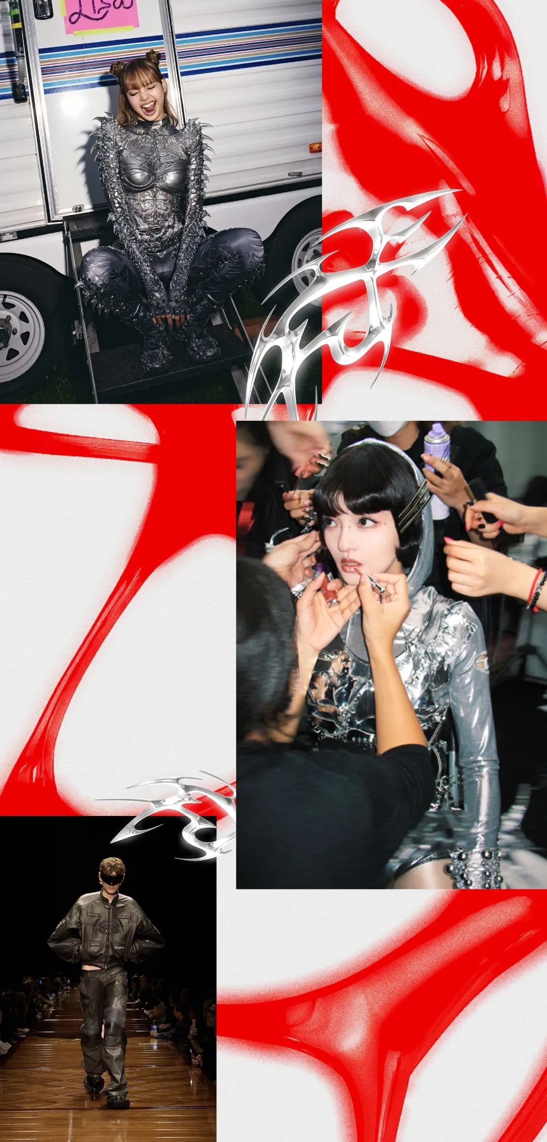 然而,在高級時裝屋的前沿實驗室、頂流偶像的舞臺風暴、以及各大品牌的未來產品線中,一種截然不同的視覺語言正以壓倒性姿態崛起——它擁抱流動的金屬、搏動的能量脈絡、幽暗的生物熒光,以及被刻意腐蝕的虛擬表面。