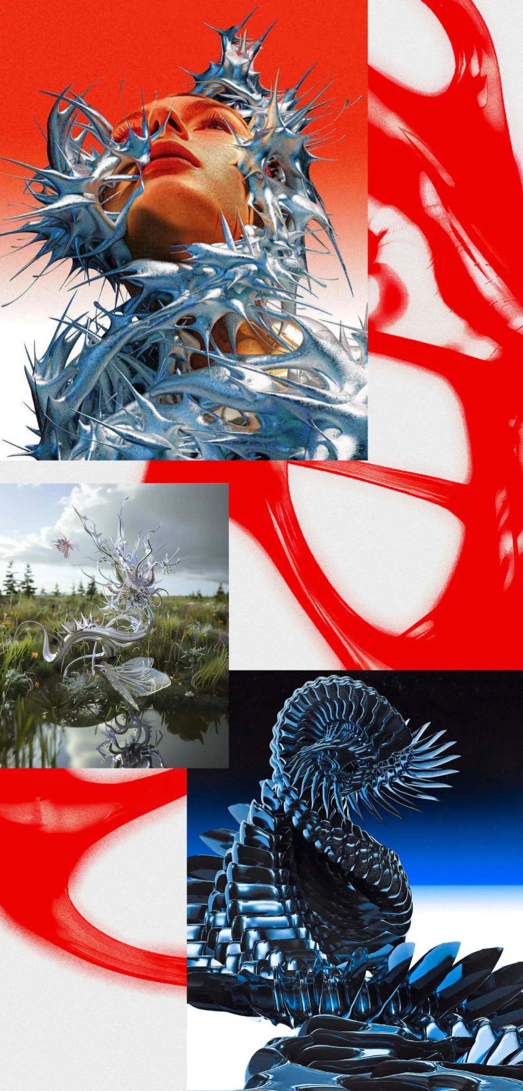 如果說Y2K美學是包裹著甜蜜未來的閃亮糖紙,那么Y3K美學,則像有人狠狠撕開了這張糖紙,露出了里面流動的、有機的、帶有生命體征與能量痕跡的、具有深度和維度的、甚至有點“活”過來的世界。
