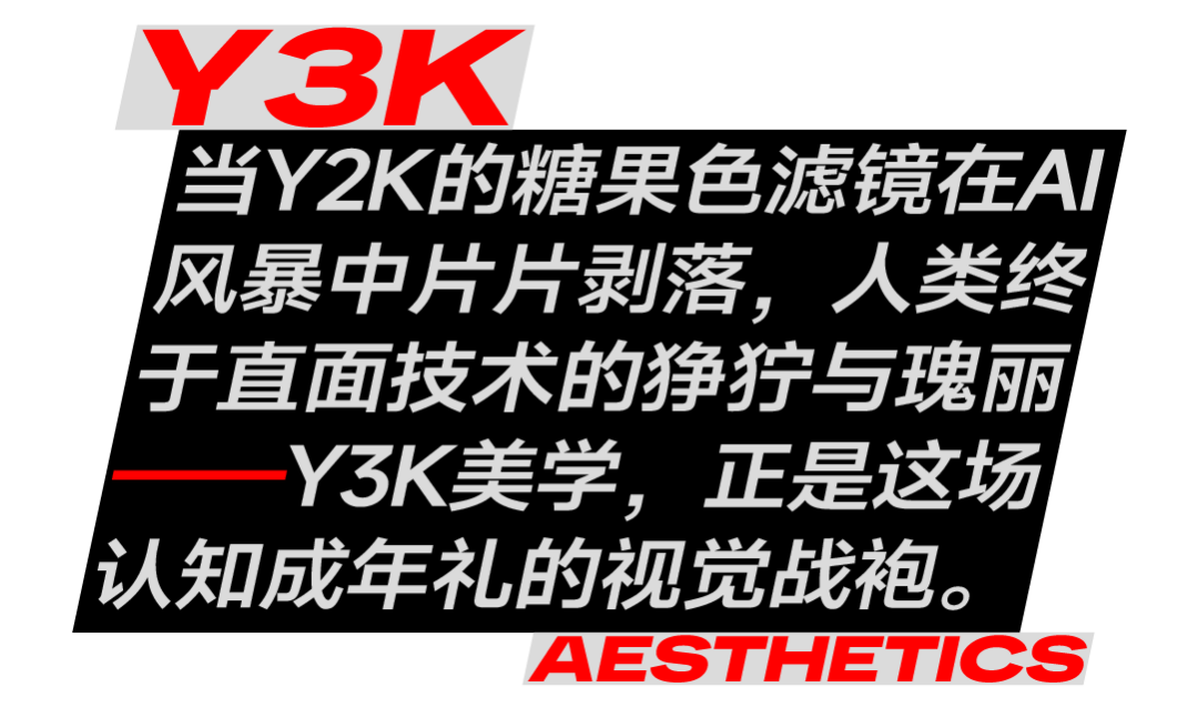 從T臺到屏幕,Y2K的平面化狂歡正被Y3K的多維撕裂感取代,一場關于未來身體、物質與空間認知的視覺革命已席卷而至。之前我們分享過Y2K風格視覺調研報告,那么今天就讓我們從Y2K的千禧甜蜜快進到Y3K的未來世界。