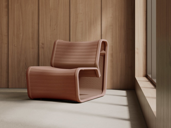 由 Paul Crofts 為 Isomi 設計的?Knit One 椅?用懸浮于空中的3D針織紡織品取代了傳統的泡沫和軟墊,創造出一種有支撐力卻又通透的坐感。采用連續、無縫的3D編織技術,這把椅子模仿了傳統軟墊的飽滿感,同時融入了借鑒經典填充設計的羅紋細節。這種創新方法不僅帶來了一件視覺驚艷、觸感迷人的作品,還消除了浪費,采用了回收材料,并最終形成完全可回收的產品,是可持續、循環設計原則的典范。