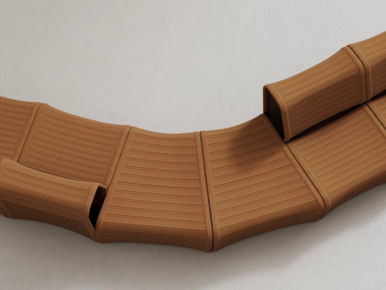 Knit One 系統延伸為一個模塊化系列,包括休閑椅、軟凳式和帶角度的模塊,每個模塊都可完全翻轉以實現靈活布局。一個可螺栓固定的實木邊桌完善了整體,而輕質金屬框架則實現了平板包裝運輸和本地組裝。該系列結合了環保責任、舒適性、靈活性和現代優雅,重新定義了現代可持續家具設計。