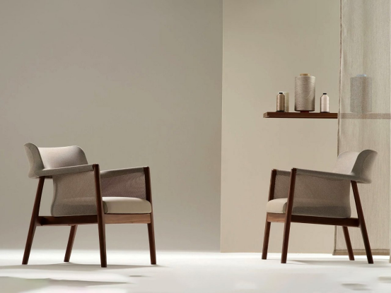 Aran 休閑椅由100%消費后回收聚酯纖維和可再生木材(如山毛櫸、白蠟木、橡木或胡桃木)制成,體現了可持續家具設計。其簡潔、優雅、精致的造型提升了任何室內空間,提供了對環境負責的創新和驚人的視覺吸引力。這把椅子展示了深思熟慮的設計如何能夠融合功能性、可持續性和精致美學。
