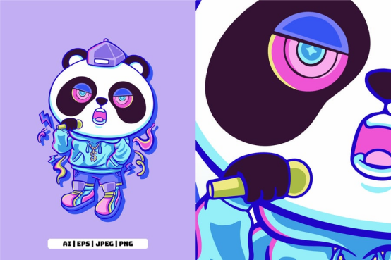 圖片說明:80 年代復(fù)古熊貓卡通插畫