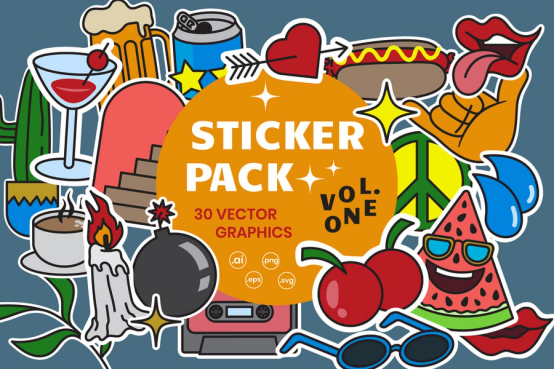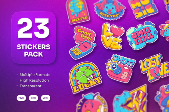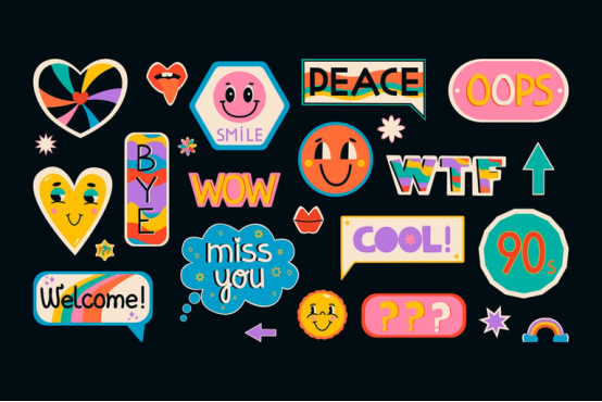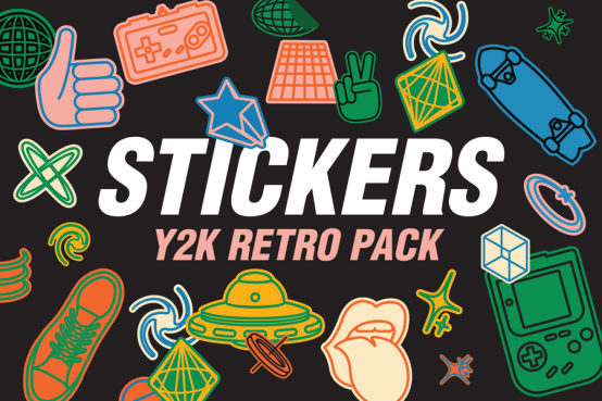 圖片說明:90 年代流行色彩風(fēng)格扁平貼紙