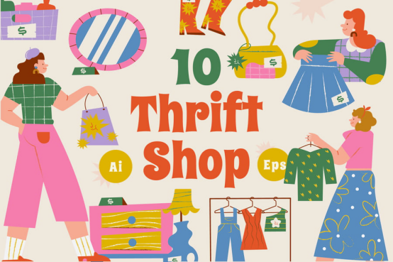 圖片說明:復(fù)古 thrift 商店扁平風(fēng)格插畫集