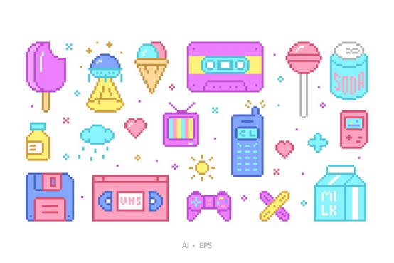 圖片說明:80 至 90 年代復(fù)古像素風(fēng)格物品集