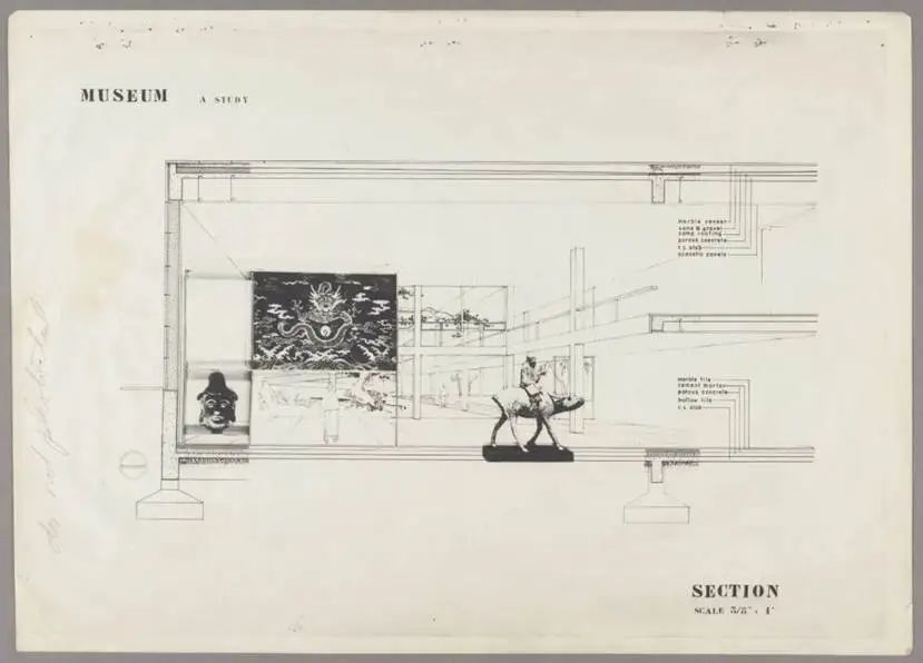 1948年2月,貝聿銘上海藝術博物館設計稿? ?雜志《進步建筑》( progressive architecture )