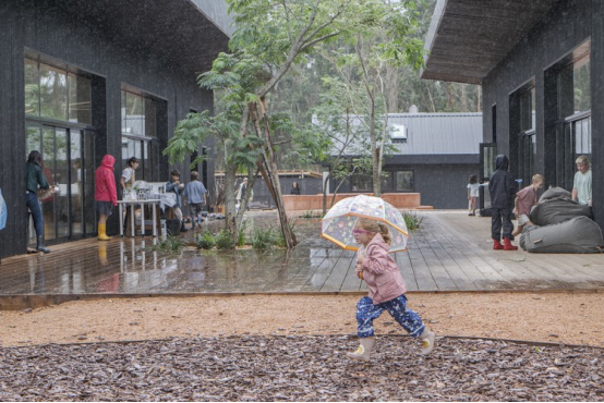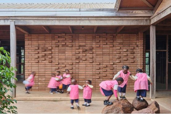 將自然融入集體學(xué)習(xí),在教育中心的發(fā)展中展現(xiàn)了益處和機(jī)遇,不僅能夠連接自然環(huán)境,還能納入與不同學(xué)科相關(guān)的活動(dòng)。例如,在烏拉圭,Rosan Bosch Studio 設(shè)計(jì)了一個(gè)沉浸于茂密桉樹林中的新校園和學(xué)習(xí)環(huán)境,培養(yǎng)了與自然的獨(dú)特連接。因此,開發(fā)了一個(gè)融合室內(nèi)外學(xué)習(xí)的設(shè)計(jì)概念,促進(jìn)好奇心、探索、游戲和自我表達(dá)。通過應(yīng)用親生命設(shè)計(jì)(biophilic design)原則,并將自然作為建筑前提和材料選擇的指南,目標(biāo)是讓學(xué)習(xí)超越傳統(tǒng)界限,將自然視為學(xué)習(xí)的補(bǔ)充和教室本身。另一方面,Urbanitree在喀麥隆設(shè)計(jì)的非洲流動(dòng)幼兒園(African Flow Kindergarten)通過以一種流動(dòng)和直觀的方式培養(yǎng)兒童與塑造其日常活動(dòng)空間的情感聯(lián)系,重新發(fā)明了教育空間。它被組織為一個(gè)連續(xù)的生態(tài)系統(tǒng)(山脈、稀樹草原、村莊和森林),旨在連接兒童與其起源和文化,讓他們參與適應(yīng)其所處空間的活動(dòng)。
