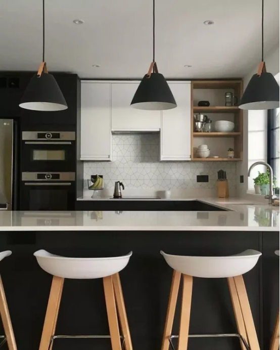 如果你想最大化廚房的功能性與動線流暢度,U型廚房半島是一個絕佳選擇。這種布局連接廚房的三側,形成一個緊湊高效的工作三角區(qū)。U型半島提供充足的操作臺面與大量地柜儲物空間,非常適合中小戶型。與島臺相比,半島具備相似的功能性卻占用更少空間,這也凸顯出半島與島臺之爭中半島的價值。它特別適用于開放式空間,讓你無需砌墻即可自然區(qū)分廚房區(qū)域。