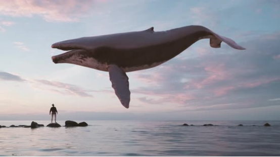 飛翔座頭鯨超現實抽象循環