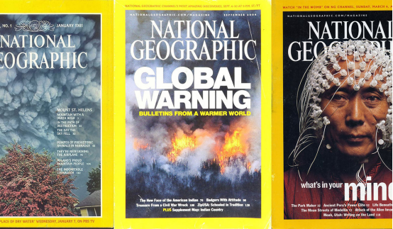 自 1888 年起,標志性的黃色邊框就是雜志的標志,這種獨特設計帶來極高品牌辨識度;精彩的野生動物攝影與相關自然紀錄片聯動,讓每一期封面都令人印象深刻;始終如一的視覺層次與字體元素,進一步鞏固了雜志在地理教育和環保攝影領域的權威。