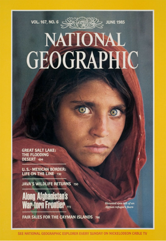 1984 年,史蒂夫?麥柯里在巴基斯坦納西爾巴格難民營拍下了 12 歲的沙爾巴特?古拉。她那雙極具穿透力的綠色眼眸,成了《國家地理》最廣為人知的攝影作品。