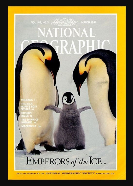 南極探險攝影展現了帝企鵝(學名:Aptenodytes forsteri)在惡劣冬季的群居生活,多期封面聚焦帝企鵝生存行為與氣候變化對其的影響。