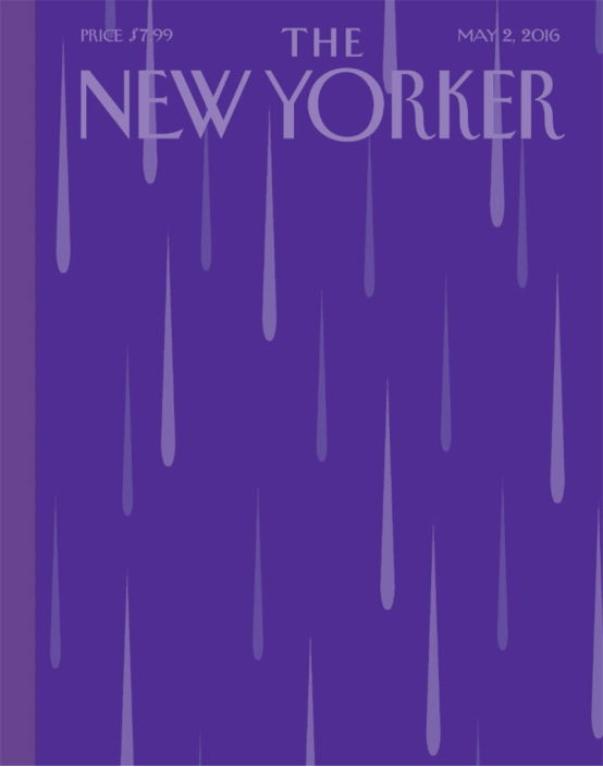 2016年5月2日的《紐約客》封面,標題為“紫雨”,采用紫色調封面紀念王子(Prince)的逝世。由鮑勃·斯塔克 (Bob Staake)?運用數字插畫并強調色彩心理學創作。該封面通過都市 imagery 慶祝了這位音樂家的文化影響。
